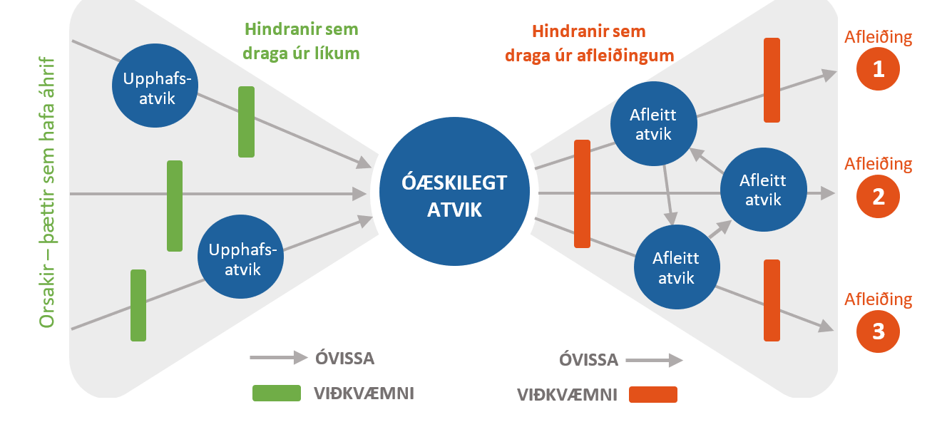[25] Líkaninu er lýst nánar t.d. í skjali Almannavarna, Greining hættusviðsmynda – aðferðarfræði (Almannavarnir, 2021)